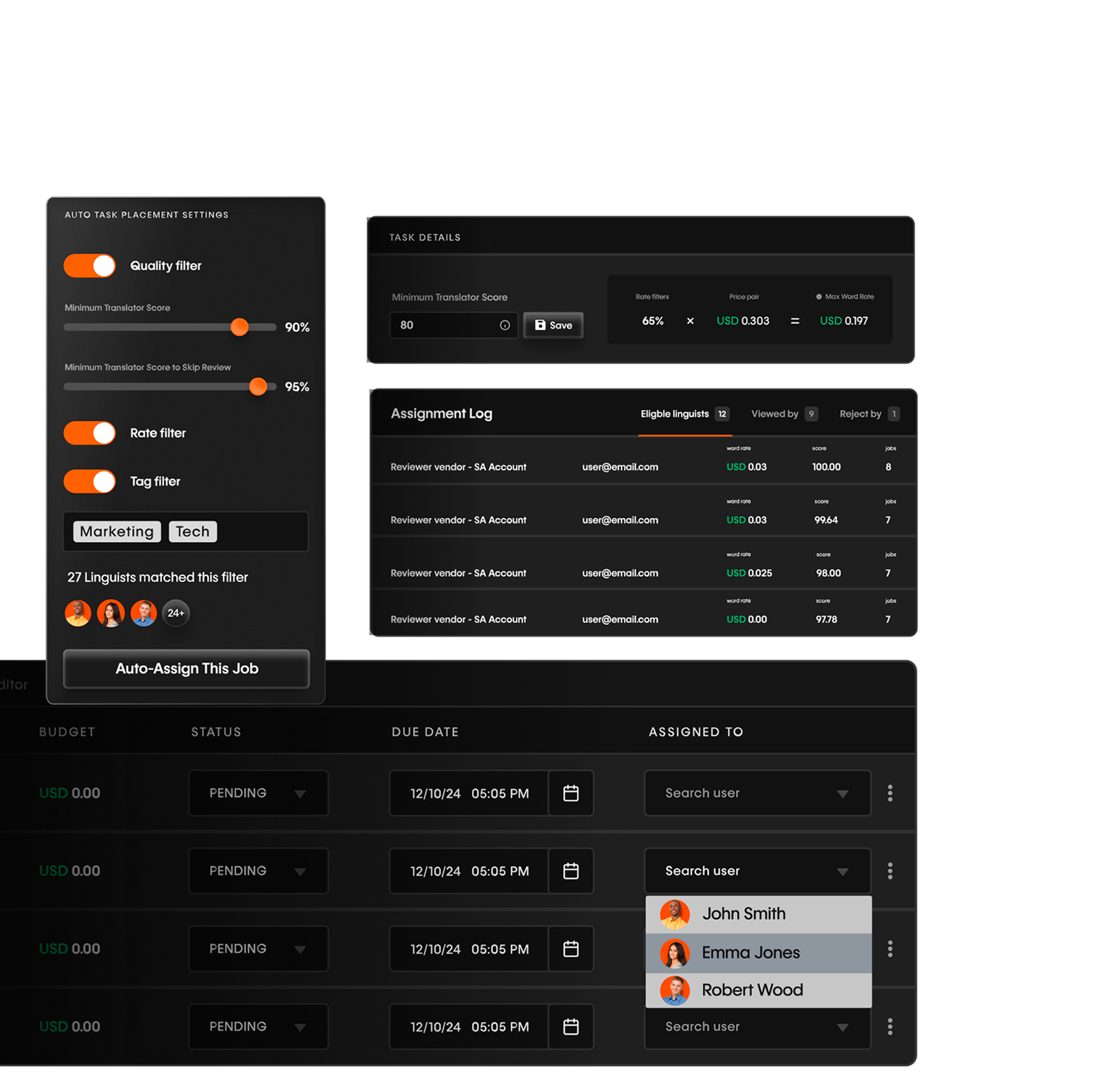 wxrks provides your vendors with dashboards so they can monitor available, ongoing, and completed jobs. Jobs that meet certain criteria show up in your vendors' dashboards, then they take the jobs that interest them and your project managers only have to work on special exceptions and complications!